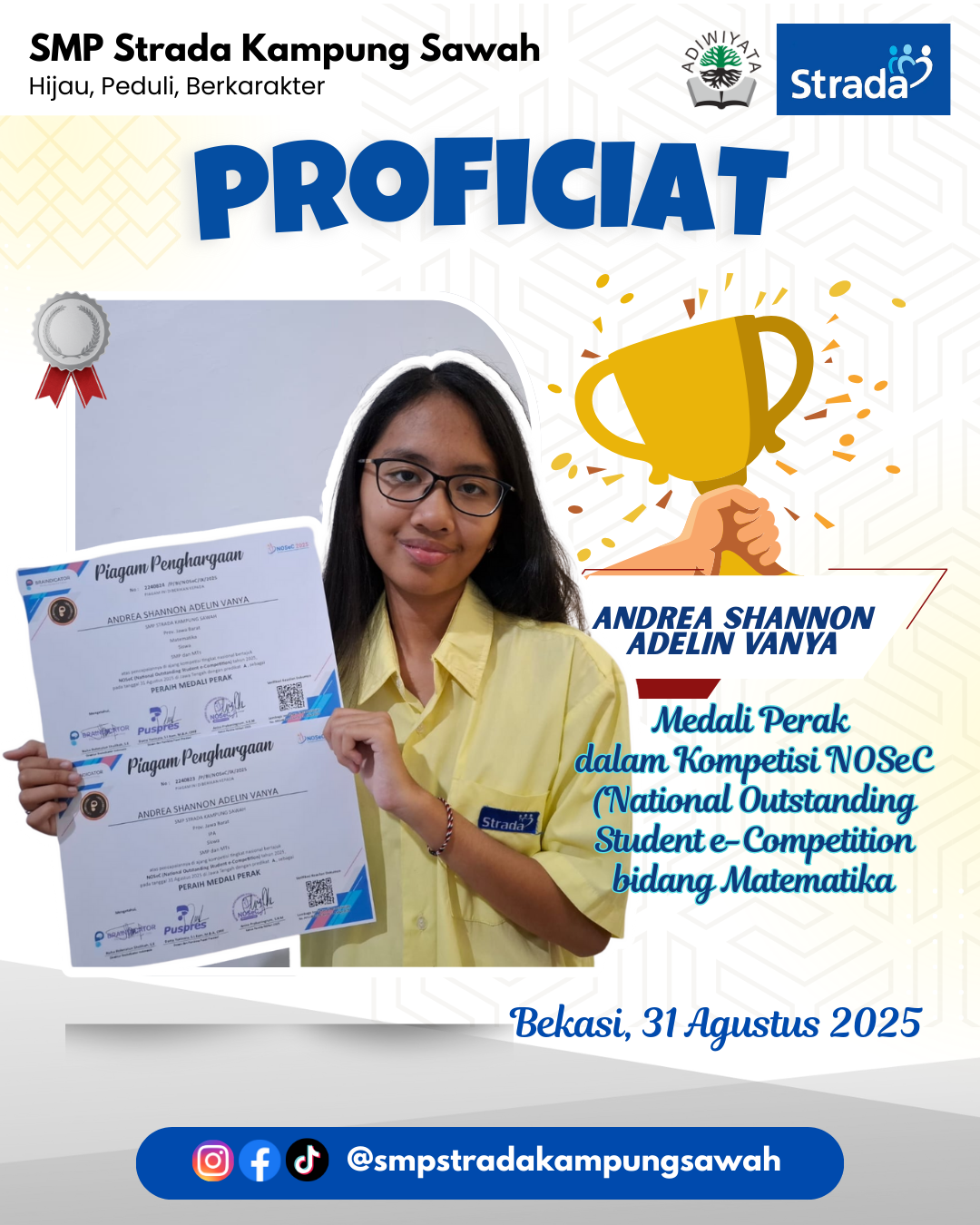 | 5 | 9.2 | Andrea Shannon Adelin Vanya | Nasional | Juara 2 | Olimpiade Bahasa Inggris | Olimpiade Sains Akademik Indonesia tingkat Nasional | 27 Juli 2025 |